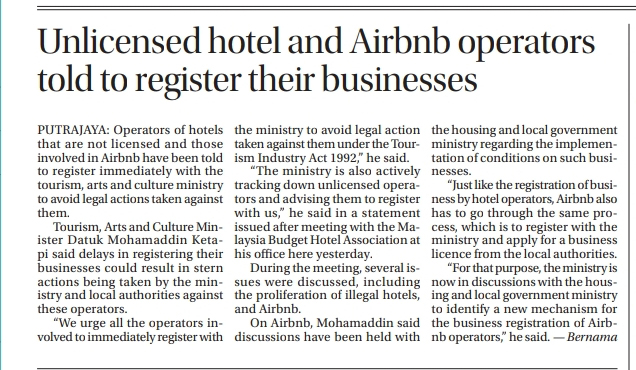Operators of unlicensed hotels, AirBnB told to register or face legal action